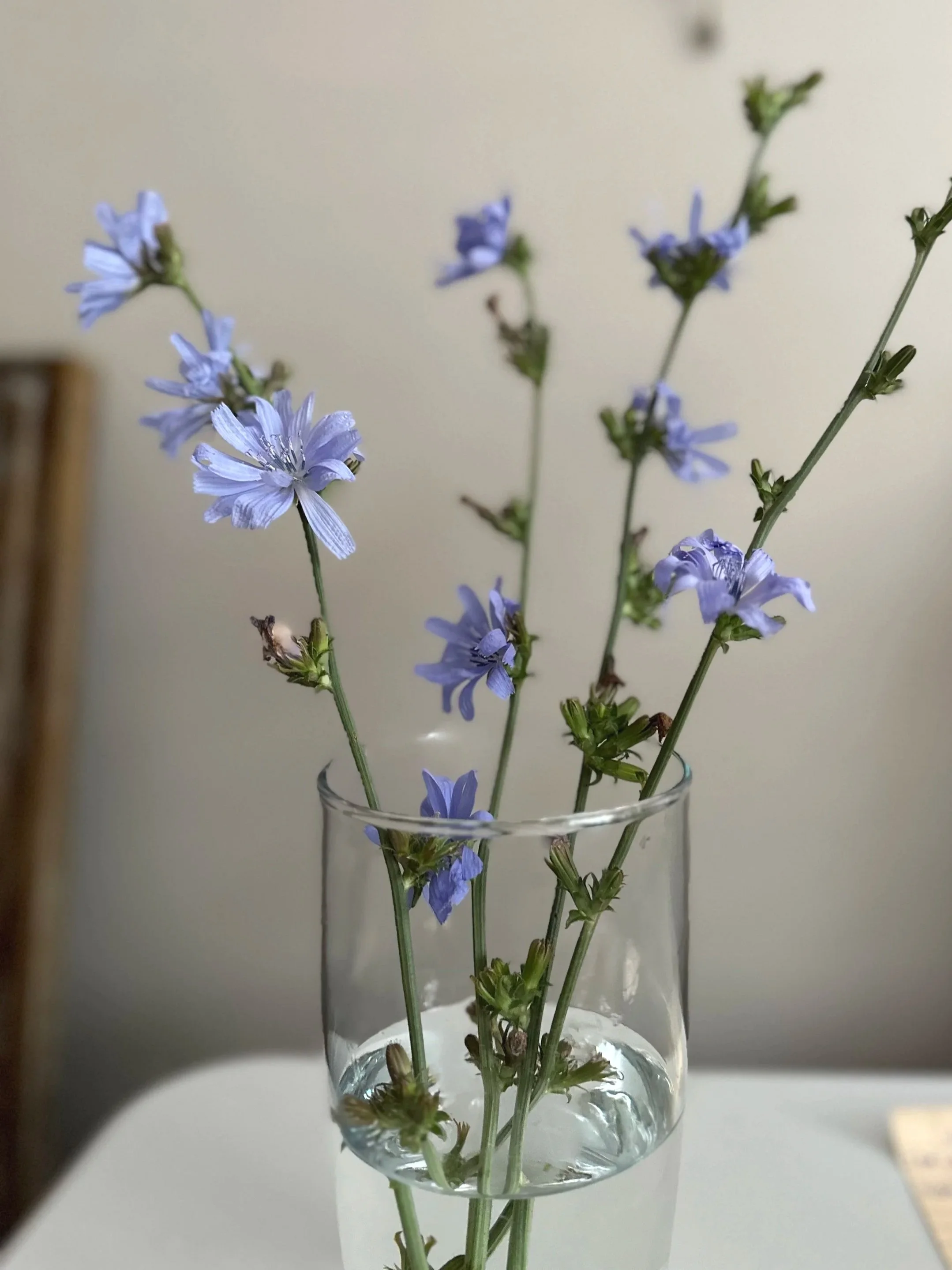 Herbarium art with real, pressed chicory that can be used as wall art or as a luxury greeting card - comes with envelope, golden seal, and protective slip.